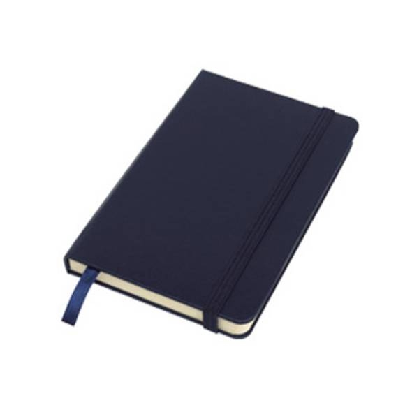 – Cartón. 80 hojas rayadas.160 páginas.Separador de hojas en tela. Cierre con banda elástica. Bolsillo interior en la parte trasera de la libreta. – Tamaño:14 x 1,5 x 21 cm. – Colores: Negro, Plateado,Rojo y Azul..
